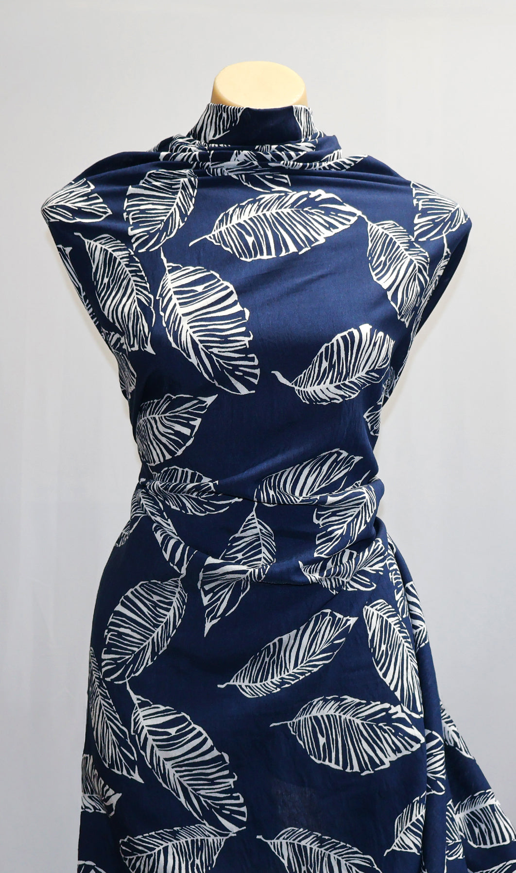 Cotton Tencel - Navy Leaf - 148cm